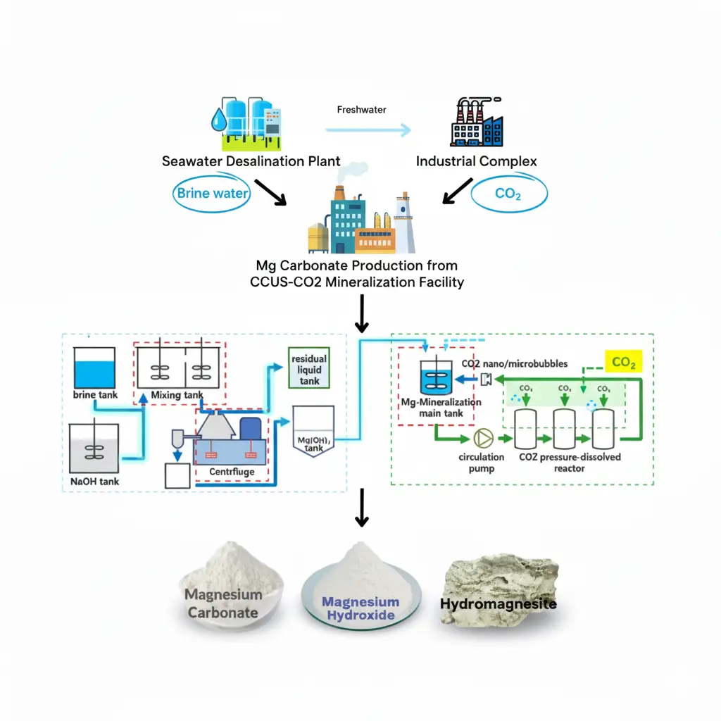 We transform toxic brine and CO₂ into valuable magnesium compounds. This Carbon Capture, Utilization, and Storage (CCUS) process extracts 8-15 kg of MgCO3 and captures 3-7 kg of CO2 per tonne of brine, redefining waste as a resource.